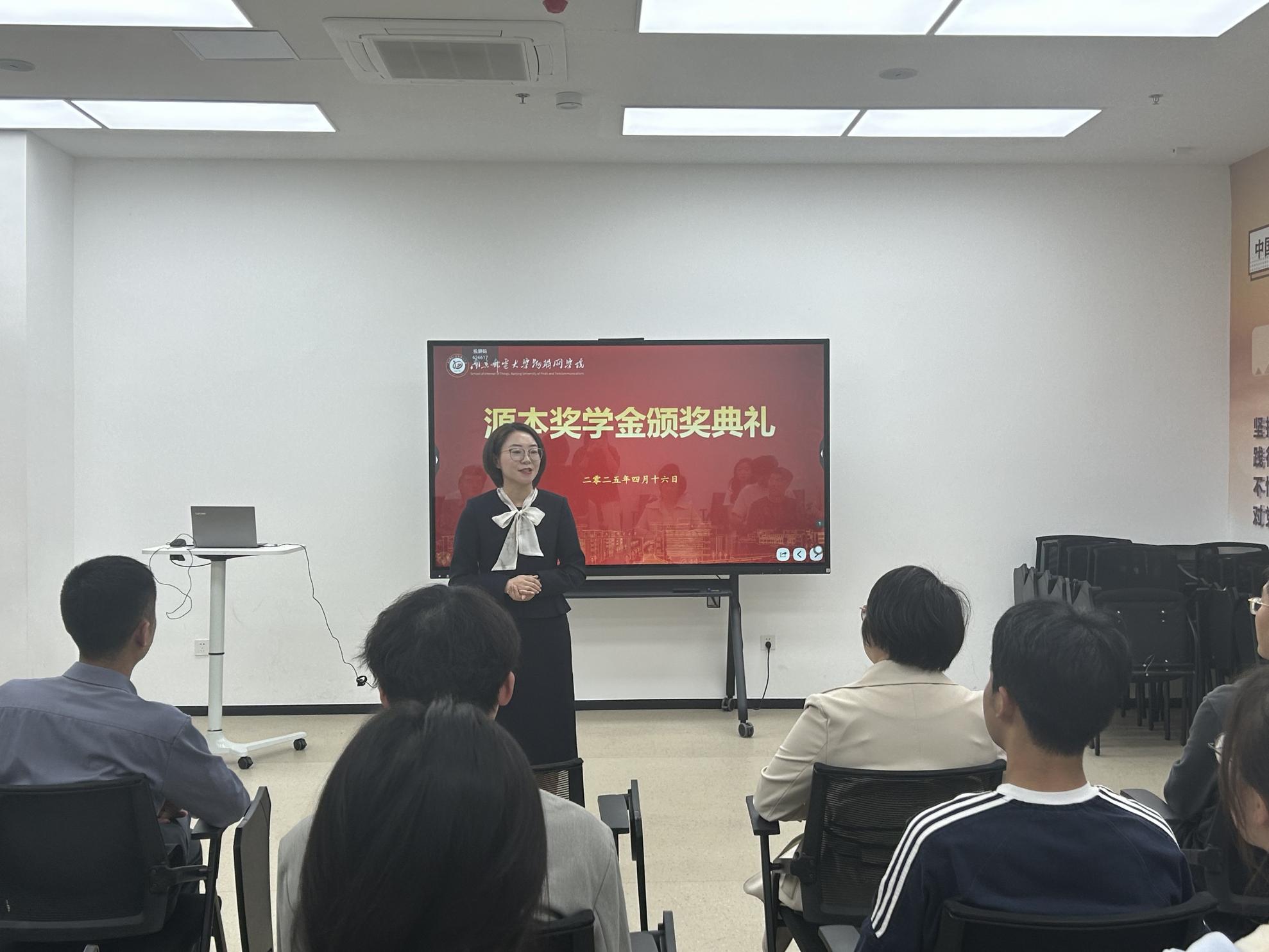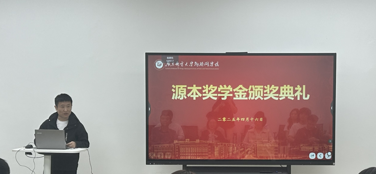 颁奖典礼由赵珂老师主持。他首先向到场嘉宾致以热烈欢迎,并逐一介绍参会领导与嘉宾。赵老师介绍了"源本奖学金"设立以来对物联网学子的激励作用,鼓励同学们好好学习,在创新道路上永葆探索热情。