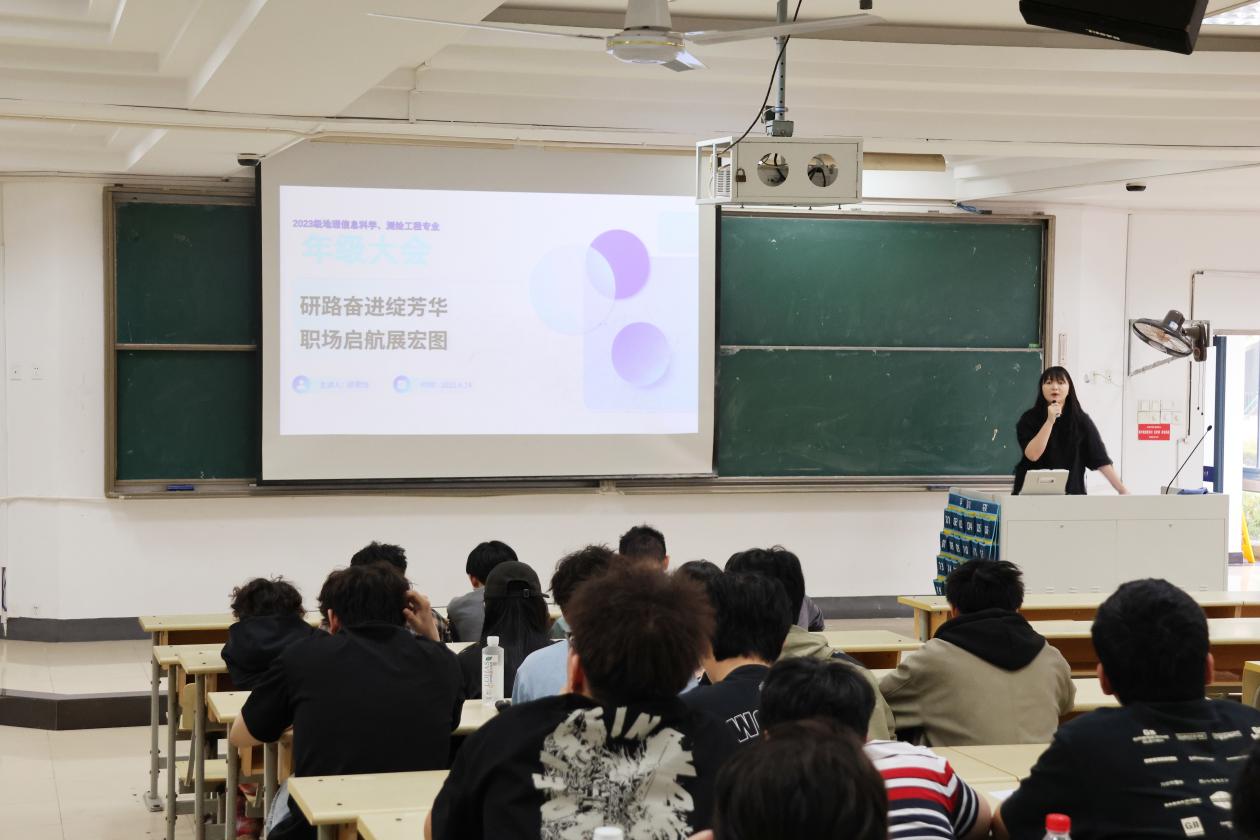 五一假期在即,为强化员工安全意识、科学规划学业与职业发展路径,4月24日,BETWAY必威2023级地理信息科学与测绘工程专业年级大会在仙林校区教二102顺利举行。辅导员顾君怡老师围绕安全教育、时间分配、职业规划、简历指导及考研动员五个方面展开深入交流,为同学们带来了一场干货满满的分享会。