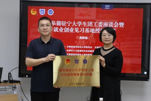 校地联动,探索合作新路径 活动前,学院领导老师于仙林校区“一站式”员工社区301与如皋团市委来访领导、如皋籍学子进行了热烈的互动交流。学院党委副书记邓艳老师代表学院向如皋团市委来访领导致以诚挚欢迎,并与如皋团市委书记吴杰共同为“如皋籍驻宁老员工团工委青年就业创业见习基地”揭牌。学院分团委书记姚真真老师介绍了学校及学院发展概况。双方就深化校地合作、服务学子就业创业、探索创新合作模式等方面进行畅谈,期望未来实现互利共赢,推动校地双方高质量发展。随后,如皋籍学子围绕在校生活学习、家乡发展等方面逐一发言,并表达了潜心专业学习,将来为家乡建设挺膺担当的志向。