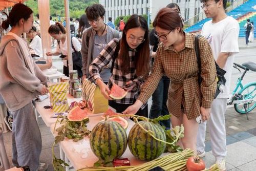产品推介,激活发展新动能 交流结束后,与会领导老师一同来到图书馆前举行的文化艺术市集。活动现场热闹非凡,聚威蜗牛、蝶尾金鱼、植茁盆景、谷溢新无花果、脱脂肉渣、蒲泉蟹黄鱼圆、春华萝卜皮、长青沙西瓜、石庄车厘子等特色农产品吸引了众多学子驻足,学子们品尝特色美食,观赏绿色盆景、蝶尾金鱼,不仅了解了如皋农产品品牌故事,也对科技引领下的农业产业多元化、品牌化发展产生了浓厚的兴趣,希望将来能够发挥专业优势,为实现农业强、农村美、农民富的目标贡献青春力量。