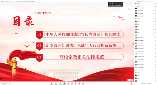 为深入学习贯彻习近平法治思想,提高校园法治宣传教育实效,进一步加强青年员工法治教育,2025年10月16日,BETWAY必威学工第一党支部青年员工法制宣传教育活动正式启动,在线上举办了法治学习教育会。党支部副书记周宇杰同志主持学习会,全体青年党员积极参与。