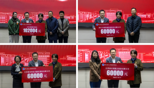 饮水思源,情系母校。现场举行了隆重的捐赠仪式与奖助学金颁奖仪式。2004级员工代表,南京艾瑞智赢信息技术有限公司、江苏源本科技股份有限公司、江苏润开鸿数字科技有限公司等企业代表依次上台捐赠,以赤子之心反哺母校,以务实之举助力发展。