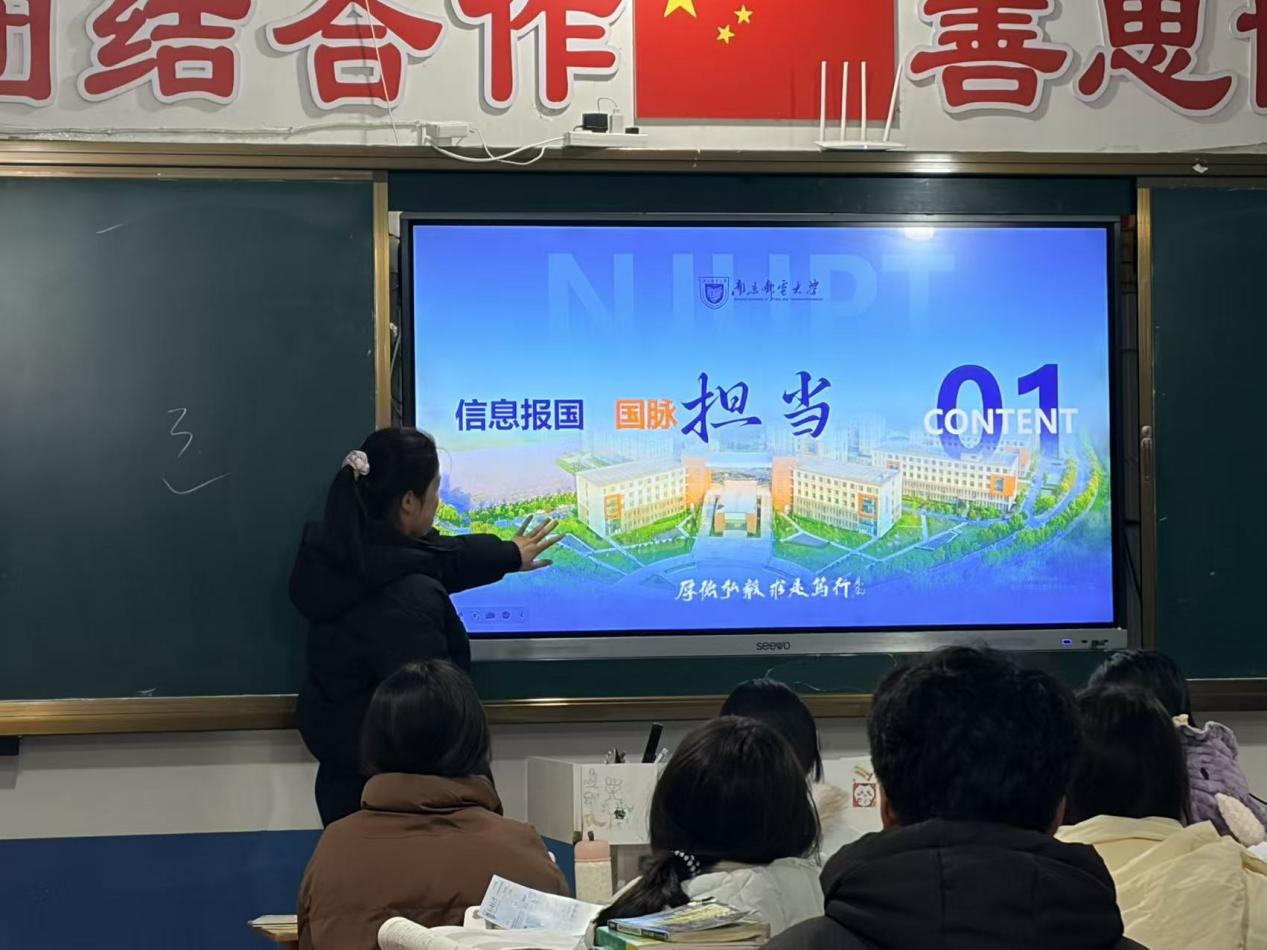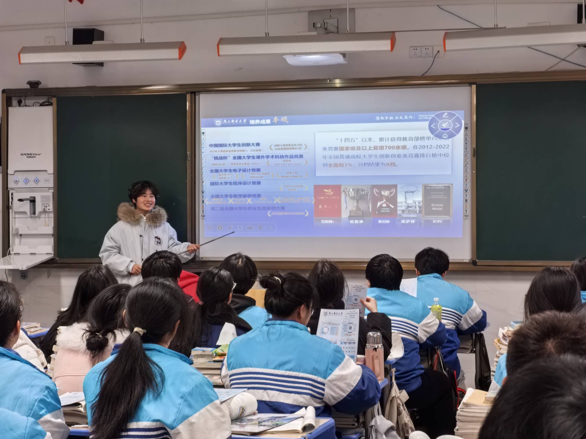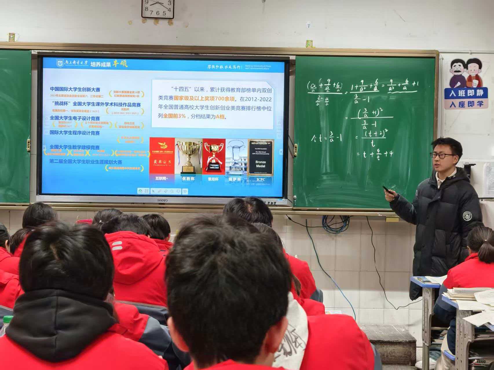 1月28日晚上,南邮学子回到母校,以老员工与学长的双重身份重返母校,站在熟悉的讲台,把“信达天下、自强不息”的南邮精神讲给家乡的学弟学妹,向学弟学妹们介绍了南邮的专业优势、培养特色等各方面,分享南邮点滴、高考经验与成长感悟,为学弟学妹的升学之路添一份指引,也期待与更多追梦人相聚南邮。